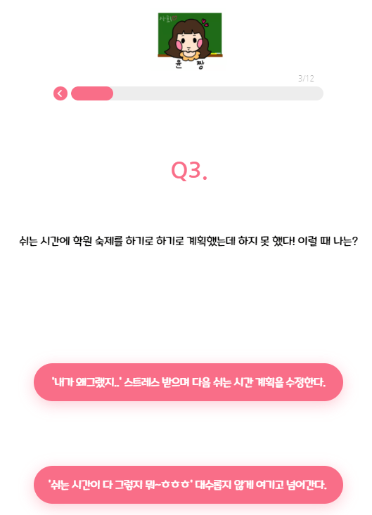 3. 쉬는 시간에 학원 숙제를 하기로 계획했는데 하지 못했다! 이럴 때 나는?